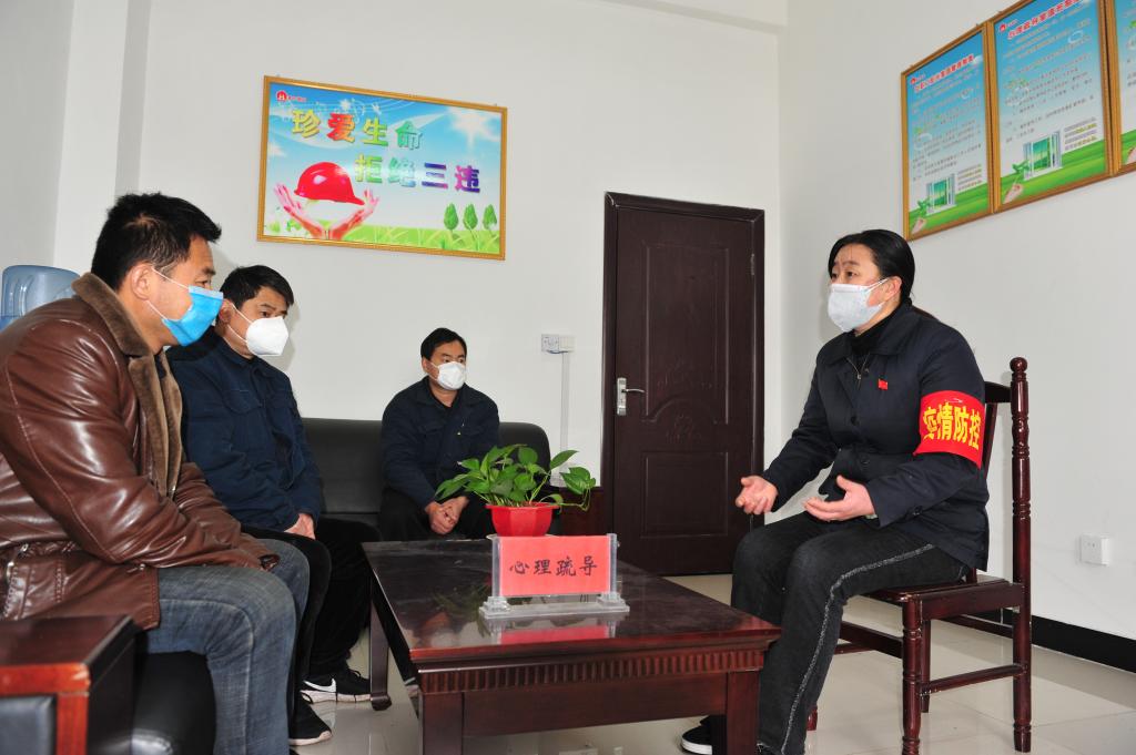 礦內(nèi)實(shí)行封閉式管理,嚴(yán)格控制人員進(jìn)出,職工食堂缺少人手。全國(guó)最美好礦嫂、全國(guó)優(yōu)秀協(xié)安員、青東煤業(yè)“李莉心理疏導(dǎo)室”負(fù)責(zé)人,物業(yè)公司黨員李莉在這一時(shí)刻扮演了“雙重角色”,在工作中她對(duì)食堂宿舍進(jìn)行衛(wèi)生消毒,在業(yè)余時(shí)間她主動(dòng)當(dāng)好職工的“心理疏導(dǎo)師”,緩解在礦職工心理壓力,為職工義務(wù)盛飯打菜?!肮久刻鞛槁毠z查體溫,嚴(yán)禁外來(lái)人員進(jìn)礦,為職工發(fā)放消毒液、洗手液、口罩,嚴(yán)格執(zhí)行分餐分浴制度,對(duì)于違反規(guī)定的相關(guān)責(zé)任人按嚴(yán)重‘三違’處理,這樣銅墻鐵壁式的管理,我們職工對(duì)自己的健康很放心!”李莉信心滿滿地說(shuō)。