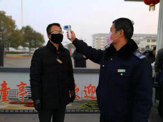“董部長(zhǎng),請(qǐng)下車(chē)測(cè)體溫。”物業(yè)分公司部長(zhǎng)董昌軍剛把車(chē)開(kāi)到該處機(jī)關(guān)大門(mén)口,就被保衛(wèi)人員楊瑞廷攔下了?!澳銈冺旑^上司你也敢攔?”旁邊有人打趣道?!耙卉?chē)一檢,一人一登記、測(cè)體溫,我們是按門(mén)衛(wèi)制度辦事,堅(jiān)決不能漏過(guò)一車(chē)一人,不是假期值班人員,其他人現(xiàn)在還不讓進(jìn)呢?!睏钊鹜⒔忉屨f(shuō)。