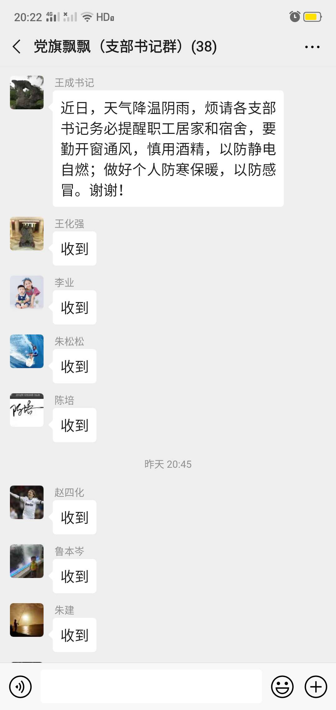 短暫的私下交流,迅速統(tǒng)一了思想。于是,群里各單位、各部門負責人紛紛回復“收到”“收到”……