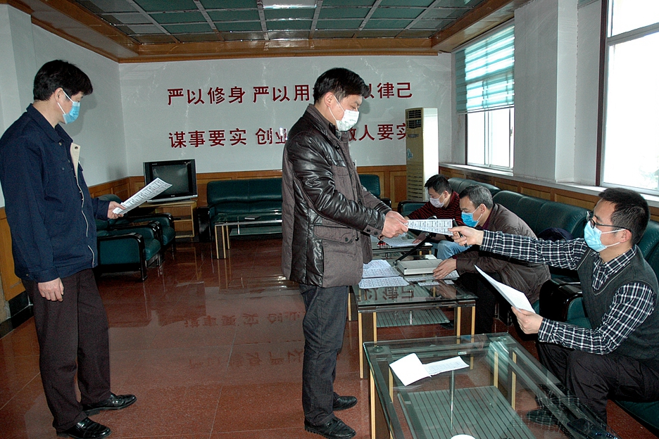 部分單位復工復產(chǎn)后,該礦在崗人員迅速增至1100余人,疫情防控工作也迎來更為嚴峻的考驗。2月10日晚上8點,礦辦公樓二樓會議室仍然燈火通明,礦領導和礦疫情防控領導小組成員正在研討當下疫情防控重點、難點,謀劃、制定防控新舉措、好辦法。