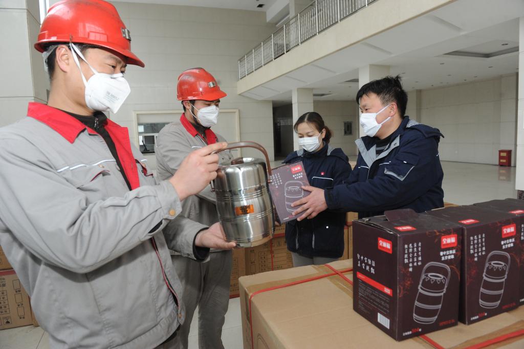 2月15日,臨選廠工會工作人員給留守職工發(fā)放餐飲保溫提桶。疫情防控廠區(qū)封閉管理期間,臨選廠工會認真做好“兩堂一舍”等重點場所疫情防控工作,為職工解難事、辦實事,給職工購置配發(fā)了保溫飯盒,在食堂就餐的職工一律打包帶回本人宿舍就餐,切實從工作、生活和精神上給予留守職工關心關愛,助力打贏疫情防控阻擊戰(zhàn)。(石啟元)