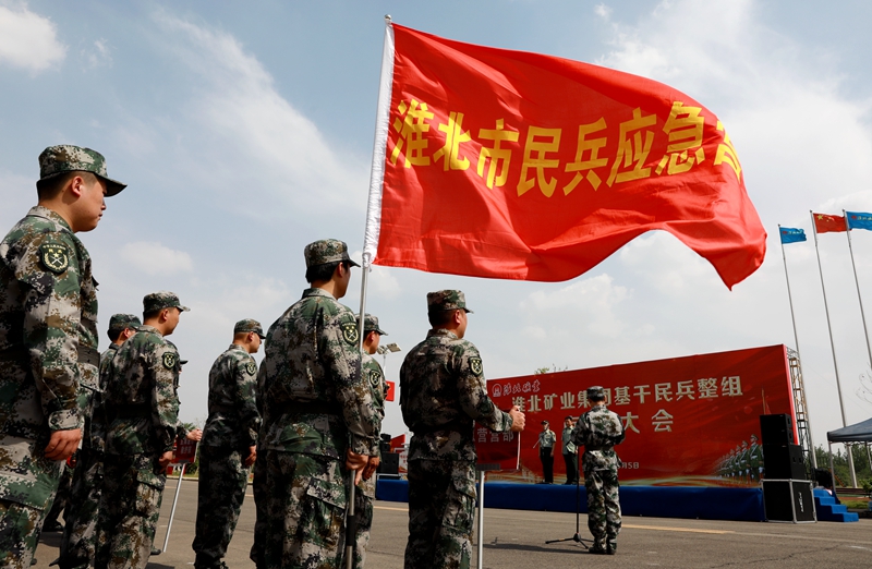 在點(diǎn)驗(yàn)大會(huì)上,淮北礦業(yè)集團(tuán)黨委宣傳部(統(tǒng)戰(zhàn)部、武裝部)負(fù)責(zé)人宣讀了安徽省淮北軍分區(qū)新調(diào)整民兵干部任職命令。全體民兵面對(duì)鮮艷的國旗莊嚴(yán)宣誓:隨時(shí)響應(yīng)國家號(hào)令,參軍參戰(zhàn),支援前線,英勇頑強(qiáng),不怕犧牲,堅(jiān)決完成任務(wù),永不背叛祖國。