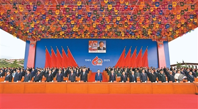 王滬寧發(fā)表講話。他說(shuō),1965年9月,在黨中央親切關(guān)懷和黨的民族政策光輝照耀下,西藏自治區(qū)宣告成立。這是西藏發(fā)展史上具有劃時(shí)代意義的大事,鞏固了西藏和平解放和民主改革的偉大成果,實(shí)現(xiàn)了西藏社會(huì)制度的歷史性跨越。60年來(lái),西藏經(jīng)濟(jì)社會(huì)全面發(fā)展,民族區(qū)域自治制度成功實(shí)踐,民族團(tuán)結(jié)日益鞏固,各族人民生活蒸蒸日上,充分展現(xiàn)了中國(guó)共產(chǎn)黨領(lǐng)導(dǎo)的堅(jiān)強(qiáng)力量,充分展現(xiàn)了我國(guó)社會(huì)主義制度的顯著政治優(yōu)勢(shì)。