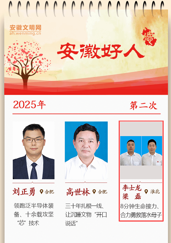 1月4日,安徽省委宣傳部發(fā)布了2025年第二次“安徽好人”榜單,青東礦職工李士龍、梁磊榮登榜單,獲評(píng)見(jiàn)義勇為類“安徽好人”稱號(hào)。