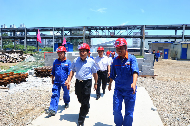 7月18日,滁州市委副書記、市長許繼偉在定遠縣縣委書記萬瑞健的陪同下到華塑股份公司調(diào)研二期工程建設(shè)情況。華塑股份公司領(lǐng)導丘永桂、高旭及鹽化管委會相關(guān)人員陪同調(diào)研。