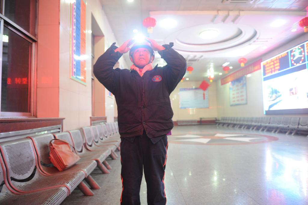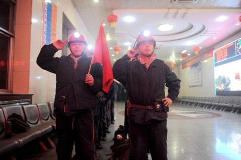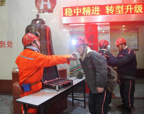 春節(jié)放假留守入井人員進(jìn)行入井前的安全確認(rèn)。入井職工個個精神抖擻,鏗鏘有力的安全確認(rèn)聲久久回蕩在候罐大廳。(王文東)