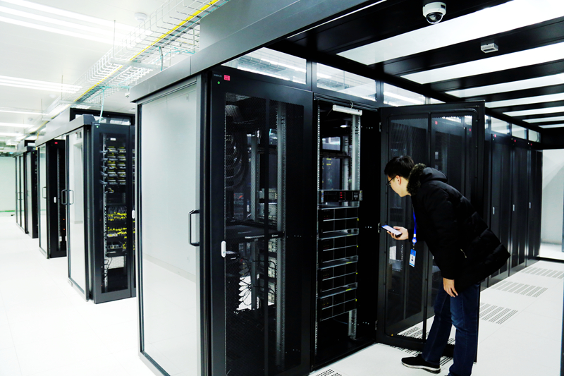 運(yùn)維人員在用手機(jī)掃碼對云計(jì)算中心設(shè)備進(jìn)行巡檢
