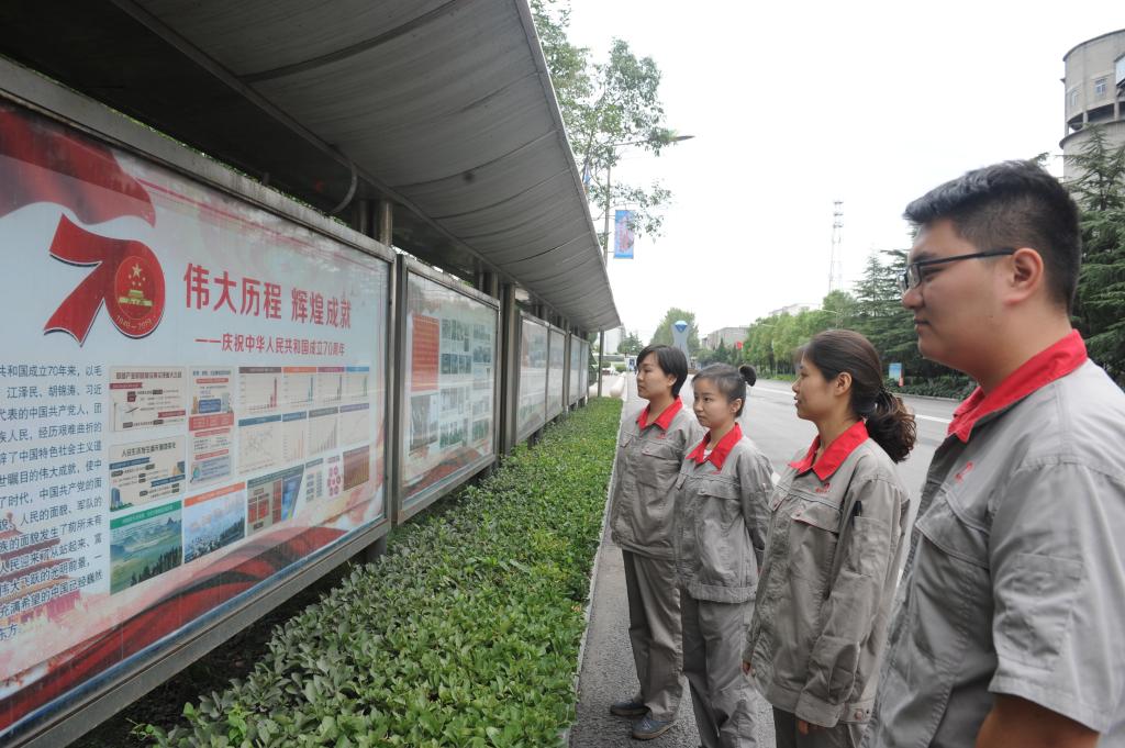 近日,在渦北選煤廠主干道旁的宣傳欄上,一組主題為“偉大歷程、輝煌成就”——慶祝中華人民共和國成立70周年的展板吸引了廣大職工的駐足觀看。