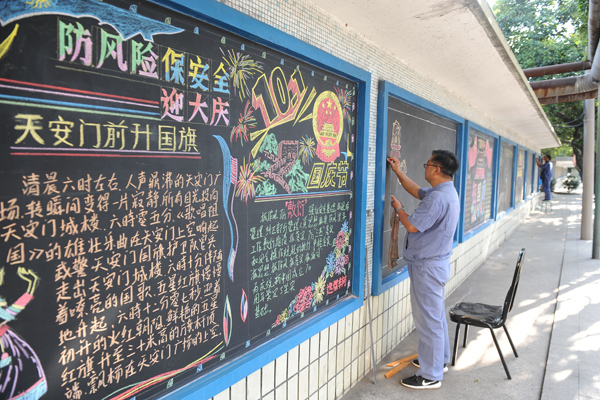 近日為慶祝新中國成立70周年,淮北選煤廠還積極發(fā)揮傳統(tǒng)媒體黑板報(bào)的宣傳、教育作用,開展以“防風(fēng)險(xiǎn)、保安全、迎大慶”為主題的手繪黑板報(bào)評比活動(dòng),引導(dǎo)干部職工樹牢堅(jiān)定“四零”目標(biāo)不動(dòng)搖,用強(qiáng)烈的政治擔(dān)當(dāng)抓安全,營造濃厚的國慶節(jié)日氛圍。(丁洋洋)