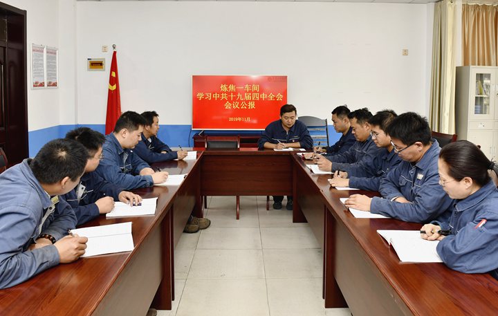11月1日,臨渙焦化公司煉焦一車間黨支部組織黨員認真學習中國共產(chǎn)黨第十九屆中央委員會第四次全體會議公報。當日,該公司黨委發(fā)出通知,要求各黨支部結(jié)合實際,組織黨員認真學習宣傳貫徹會議精神,為推進國家治理體系和治理能力現(xiàn)代化作出自己應(yīng)有的貢獻。(王明明 攝)
