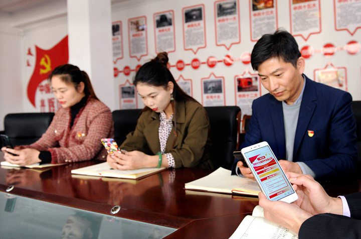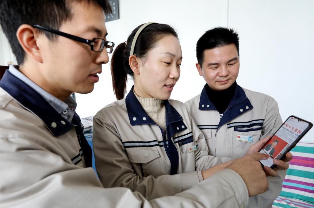 11月1日,朱仙莊礦幾名黨員正在運用“學習強國”平臺認真學習黨的十九屆四中全會精神。黨的十九屆四中全會勝利閉幕后,該礦利用廣播、電視、網(wǎng)絡(luò)、學習強國平臺等多種形式組織黨員干部深入學習全會精神。該礦黨員干部紛紛表示,在習近平新時代中國特色社會主義思想的指引下,全面貫徹落實全會精神,立足本職崗位,擼起袖子加油干,奮力推動企業(yè)高質(zhì)量發(fā)展。(朱安 攝)
