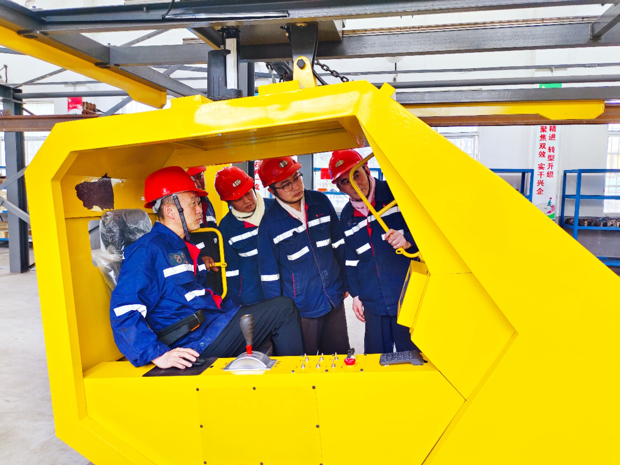 神源煤化工團(tuán)委組織集團(tuán)勞模、該礦運(yùn)輸區(qū)單軌吊隊(duì)隊(duì)長周義忠(左一)為青年開展單軌吊實(shí)操培訓(xùn)。(韓成軍 攝)