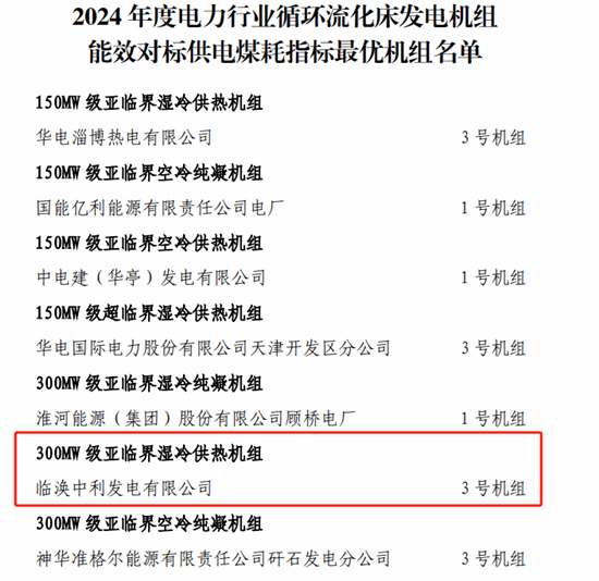 近日,中國電力企業(yè)聯合會發(fā)布2024年度電力行業(yè)循環(huán)流化床發(fā)電機組能效對標優(yōu)勝機組名單,中利發(fā)電公司3號機組榮獲“300MW級亞臨界濕冷供熱機組”5A級優(yōu)勝機組稱號。