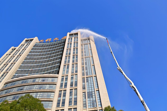 此次高層建筑火災(zāi)模擬實戰(zhàn)演練,直觀檢驗了JP65舉高噴射消防車對工程大廈的應(yīng)急救援能力,提升了高層建筑突發(fā)火災(zāi)應(yīng)急處置能力,為保障工程大廈建筑安全及人員生命財產(chǎn)安全筑牢了堅實“防火墻”。